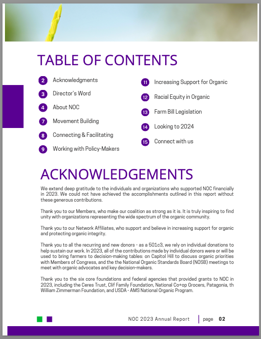The NOC 2023 Annual Report summarizes the highlights of NOC’s work in 2023: from policy and advocacy wins, to successful events bringing the organic community together, and thriving partnerships with allies.
